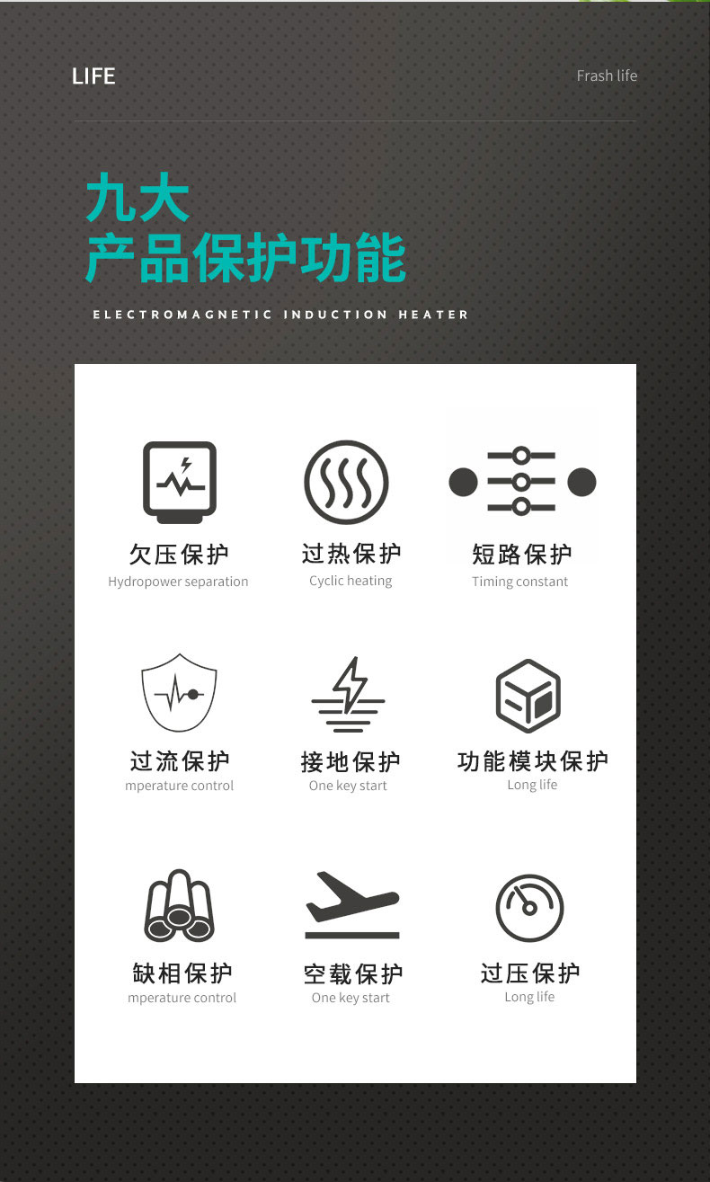 產品描述:電磁加熱器,是現今工業領域和民用設備中最廣泛的一種加熱方式,采用電磁加熱技術,電磁感應加熱技術簡稱為 IH(Induction Heating)技術,是在法拉第感應定律的基礎上發展起來的,是法拉第感應定律的一種應用形式。