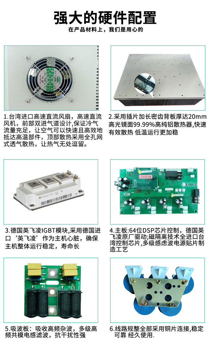 4、采用世界名牌原裝進口英飛凌IGBT模塊;